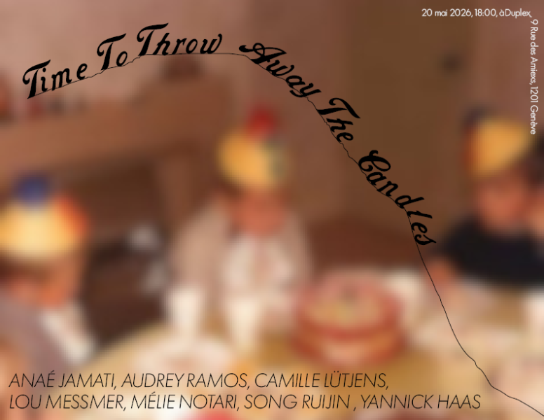 Nous sommes un duo d’artiste curatrices toujours en études à la HEAD, qui souhaitent profiter d’espaces à Geneve afin de mettre en avant les artistes émergents locaux que nous admirons, qui nous entourent et qui portent nos valeurs de partage, de remise en cause de notre milieu artistique. Nous avons toutes les deux déjà de l’experience dans la curation, mais ce projet serait notre premier indépendant de toute institution. Avec l’exposition Time To Throw Away the Candles, nous rassembleront 7 artistes le 20 mai à àDuplex, encore en études ou tout fraichement sorti.e.s, pour faire des visuels sur des assiettes en carton qui serviront à manger un buffet lors du vernissage. Avec ce concept d’exposition décalé, sans oeuvre concretes dans l’espace, nous souhaitons questionner les codes établis de la curation qui répondent aujourd’hui à un certain entre-soi. Ces assiettes seront aussi l’occasion de rendre l’art contemporain accessible à un plus large public qui peut être present seulement pour se nourrir. Nous nous focalisons donc sur le côté evenementiel du vernissage comme prétexte pour mettre en avant l’aspect social de celui ci, de partage d’expérience, de vivre ensemble dans un monde de plus en plus précaire pour les artistes. Ces assiettes et la place centrale que prend le buffet sont aussi l’occasion de faire un repas populaire et réflechir à ces moments (les vernissages) qui restent du travail gratuit pour les artistes. Bien souvent, le choix entre se nourrir, ou bien de financer nos projets se pose. A travers les visuels des assiettes, les artistes sont invités à convoquer leur rapport à l’enfance, expérience universelle, qui peut être pleine de nostalgie mais aussi de violences. Nous avons choisi les artistes pour leurs liens avec le domestique, l’absurde, l’enfantin, l’étrange, la violence intime... Toust.es avec des parcours assez différents pour créer une exposition riche en propositions cohérentes. Cette exposition sera aussi l’occasion de faire un atelier débat/partage de ressources, où les gens presents pourront échanger sur leurs rapports à la curation, ses codes et les dynamiques de marginalisation, fétichisation qu’elle peut créer ; ainsi que partager leurs différentes astuces pour survivre à ce milieu très précarisant, et peut être comment s’autonomiser sans les institutions.
